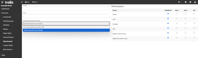 Value: Input the value of your benchmark. Eg this specific facility has a Floor Area of 420 m^2, or the Inventory-Wide Floor Area is 3,205 m^2.