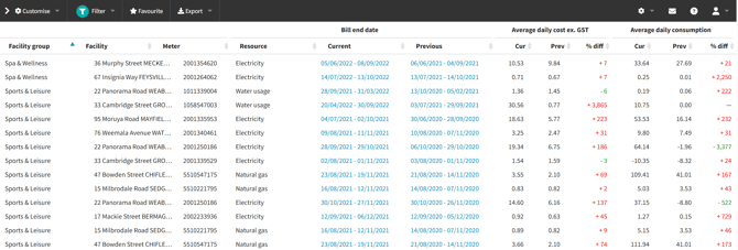 Compares most recent bill against previous year's equivalent period (or best available comparison data)