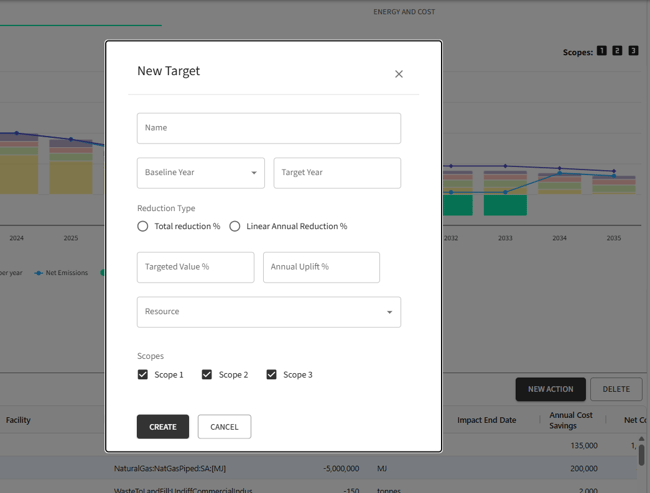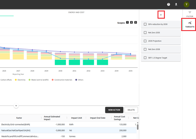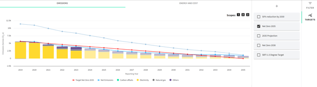 - The Targets dashboard provides a visual representation of your progress. It compares current emissions trajectory against your set targets.