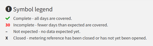 [-] Not expected: No data anticipated for this period based on the billing cycles / patterns, or showing months in future