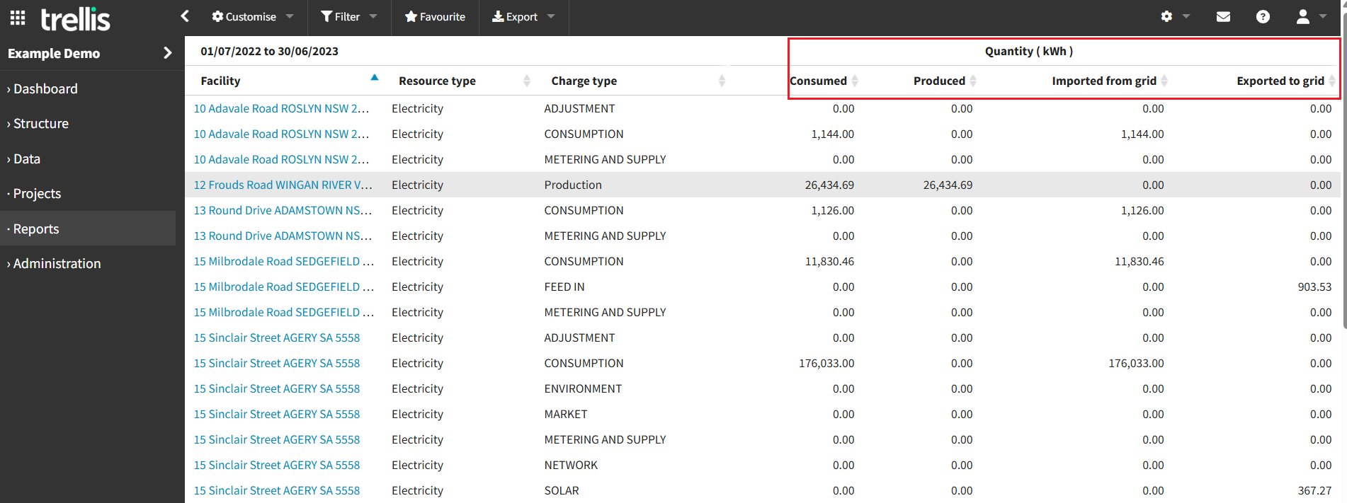 This documentation focuses on features specific to the Electricity Production Report. For information about standard reporting capabilities (like customisation, filtering, exporting, etc.), please refer to the General Reporting Guide.