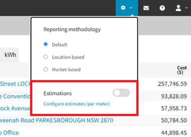 • The estimation toggle must be enabled for estimations to apply, but only configured meters are affected.