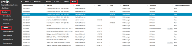 • Clicking ‘Configure Estimates’ directs users to the ‘Meters’ page.
