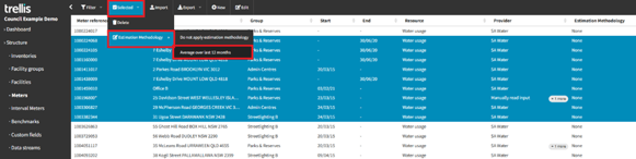 • Estimations can only be enabled or disabled for meters that have been configured.