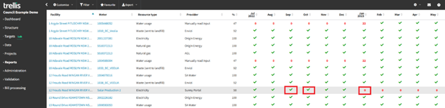 A meter’s data will remain incomplete (red in the Coverage Report) if: