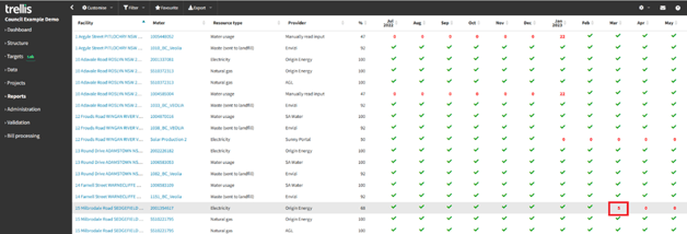 • Example: March 2023 has data for 5 days out of 31 (red 5 in the Coverage Report), which means it’s missing data for 26 days.