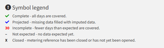 Blue tick indicates: Some or all missing days are estimated based on chosen methodology