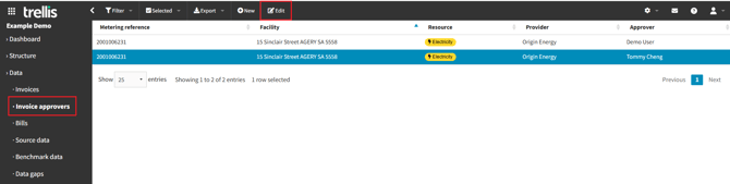 Navigate to: Data → Invoice Approvers