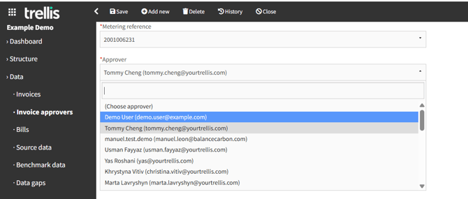 Invoice approvers are linked to specific metering references. These approvers will be responsible for approving invoices associated with their assigned meters. Once the Invoice Approval feature is enabled, any user can assign approvers.