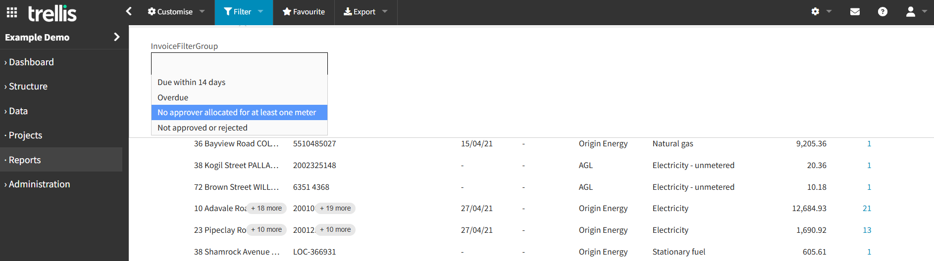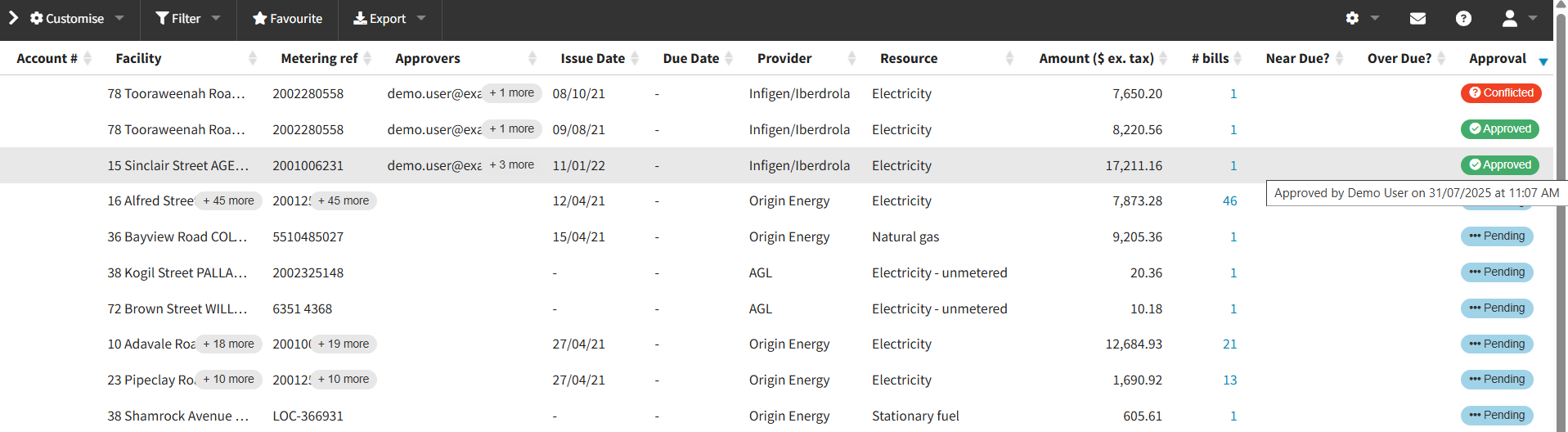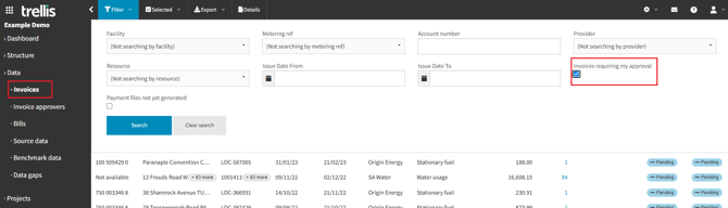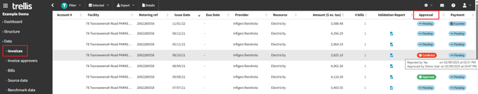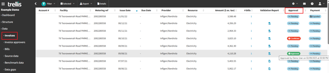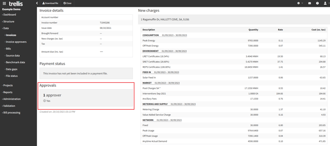 The Invoice Approval functionality enables a streamlined, lightweight workflow for reviewing invoices before payment. This feature is suitable for organisations with multiple people responsible for accounts requiring delegation of approvals. It provides visibility into invoice status and allows approvers to be assigned to specific metering references.