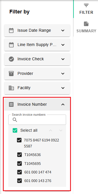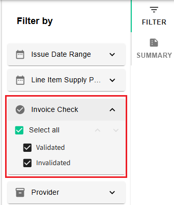 Allows for filtering of Invoices by their overall status – Validated or Invalidated