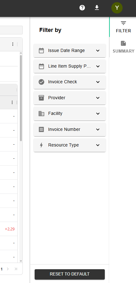 The right-hand panel contains a suite of instantaneous filters that allow you to narrow down your view of the data and focus on exactly what you need to review. You can use the “RESET TO DEFAULT” button at any time to go back to the default selections.