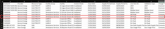 All selected data from the table will be normalised and flattened. Each invoice line item will be represented as a single line item in the output spreadsheet, with invoice number, provider and other top level columns included in that row. The sub line item details such as the check result reasoning are also flattened in line, allowing you to extract any single line of the spreadsheet as comprehensive evidence of errors for your supplier.