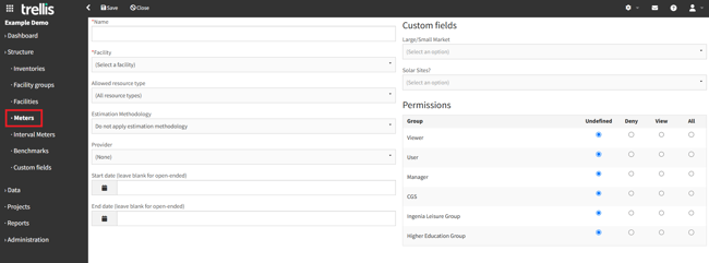 Name - Used to match source data read by Trellis to the meter. Meters with duplicate names may not be valid for overlapping periods. Typical meter names include: