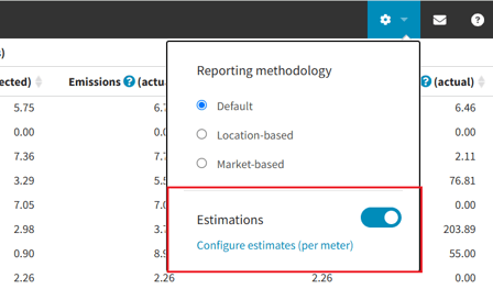 Estimations can be enabled for this report using the the toggle located in the reporting settings at the top right corner of the page.