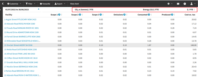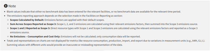 Use this report to track emissions, energy, cost, and consumption for a single period.