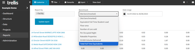 Select a benchmark (if available / applicable), to modify the results shown in accordance to your benchmark metrics.