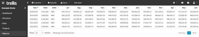 The Year-on-Year Comparison Report enables users to vertically compare monthly data across multiple years, providing insights into patterns and trends over time.