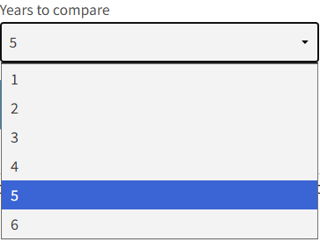 - Select the desired number of “Years to compare”. Each year will be a separate row in the results table.