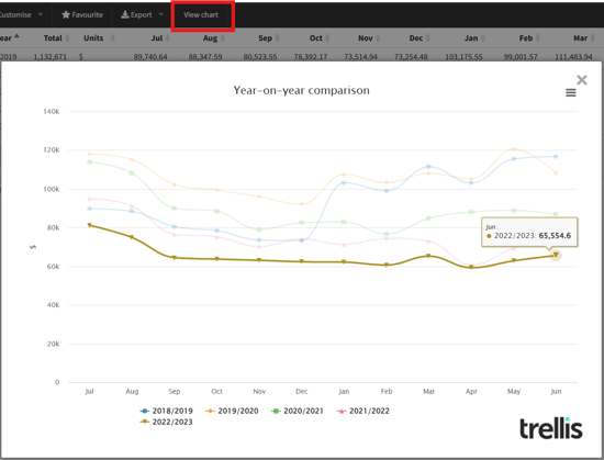 This documentation focuses on features specific to the Year-on-year Comparison Report. For information about standard reporting capabilities (like customisation, filtering, exporting, etc.), please refer to the General Reporting Guide.